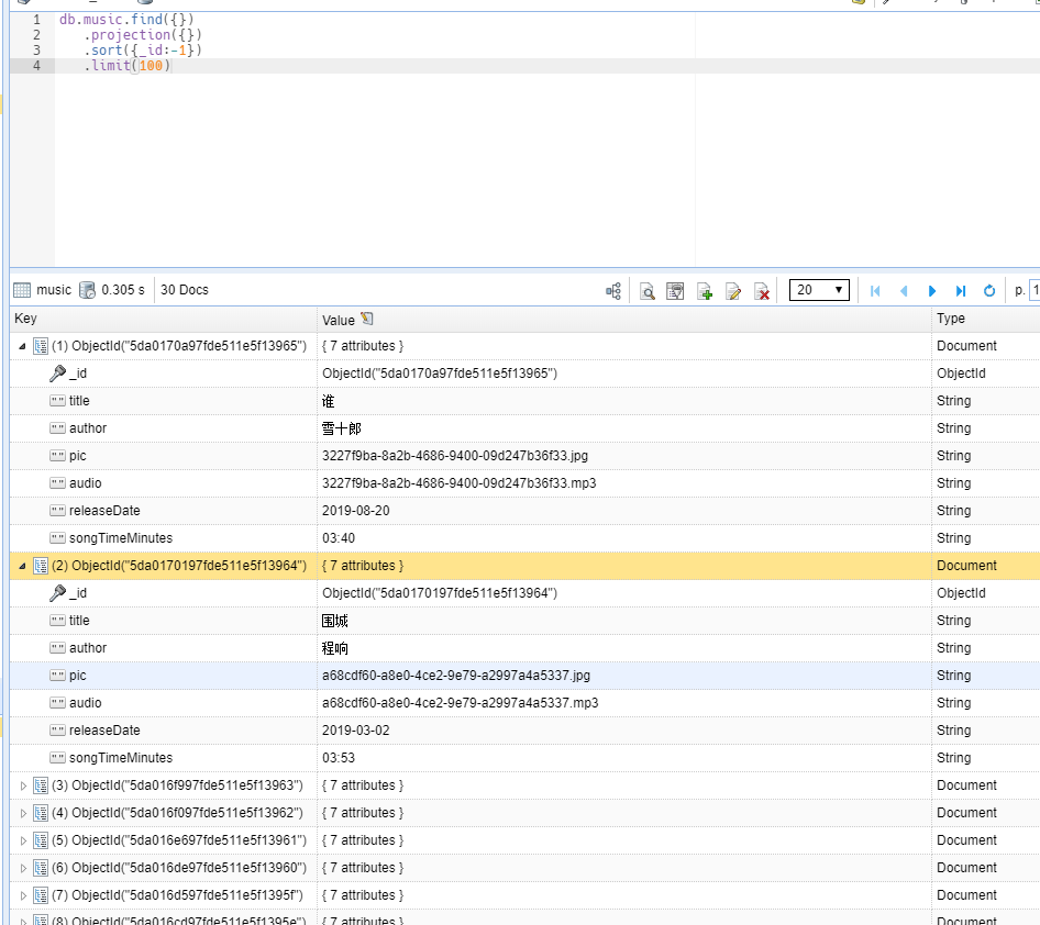 数据库中我们也可以看到歌曲信息也正常保存了