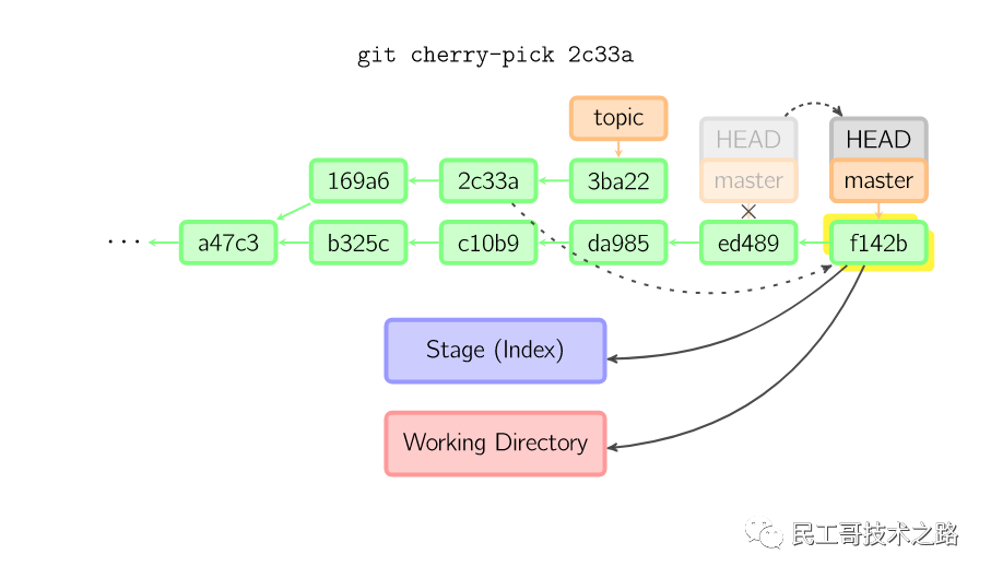 cherry-pick命令“复制”一个提交节点并在当前分支做一次完全一样的新提交。