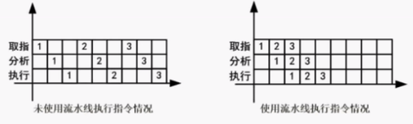 使用流水线执行任务情况为:甲负责不停的把树一颗一颗运过来,乙负责不停地把数一颗一颗的栽上去,丙负责不停地一颗一颗教书。这样三个人同时在工作,没有休息的时刻,效率最高。类似工厂的流水线也是这样。