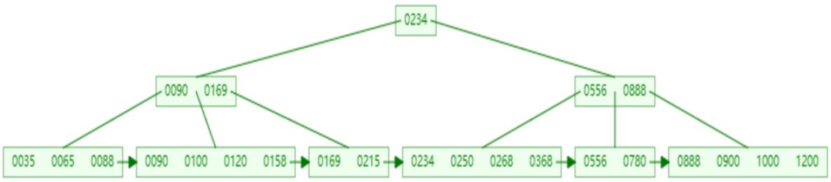 B+Tree是B-Tree的变种,我们以一颗最大度数(max-degree)为4(4阶)的b+tree为例,来看一下其结构示意图