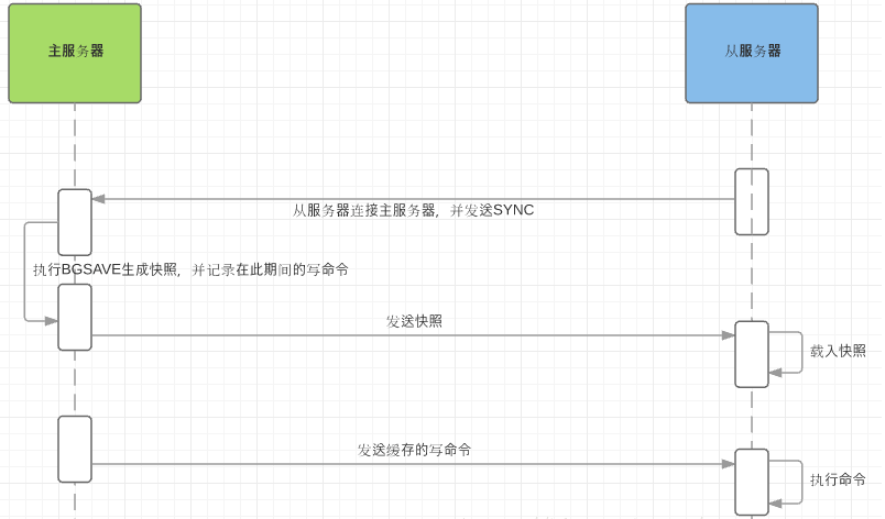 5)主服务器快照发送完毕后开始向从服务器发送缓冲区中的写命令;