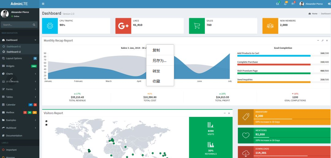 基于 Bootstrap 4 和 Material 风格的控制面板。