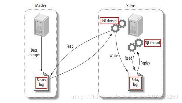 master将改变记录到二进制日志(binary log)中(这些记录叫做二进制日志事件,binary log events);slave将master的binary log events拷贝到它的中继日志(relay log);slave重做中继日志中的事件,将改变反映它自己的数据。