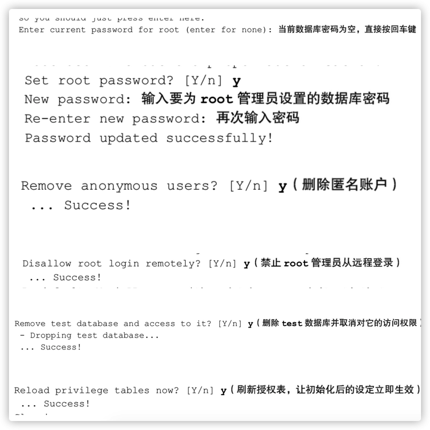 在确认 MariaDB 数据库软件程序安装完毕并成功启动后请不要立即使用。为了确保数据 库的安全性和正常运转,需要先对数据库程序进行初始化操作。这个初始化操作涉及下面 5 个 步骤。