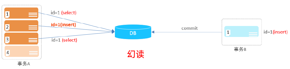 幻读:一个事务按照条件查询数据时,没有对应的数据行,但是在插入数据时,又发现这行数据已经存在,好像出现了 “幻影”。