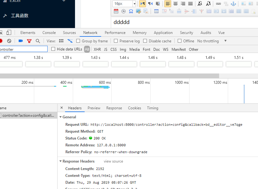 默认请求接口带了一个action和callback的参数,200接口访问成功,但是却没有取回任何数据,观察下之前我们用到的测试服务接口,是有返回数据的,对方是用的php,我们来看下ueditor_view.py源码