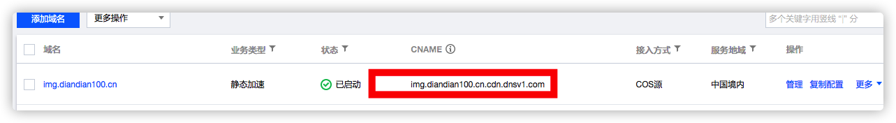 添加完记得去你域名管理(非cdn域名管理)处将这条记录给解析掉哟。
