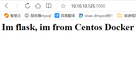 @app.route('/') def index(): return '<h1>Im flask, im from Centos Docker</h1>' if __name__=='__main__': app.run(host='0.0.0.0', port=9000)