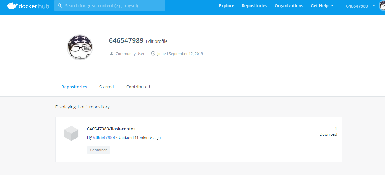 root@Tony-PC:/home/tony# docker push 646547989/flask-centos The push refers to repository [docker.io/646547989/flask-centos] 630f3a7bfad7: Pushed 877b494a9f30: Mounted from library/centos latest: digest: sha256:c81d9d2d6d595c912c5ed6215e1c2e7da14518a141ae19f226eaaa146bd68d94 size: 741
