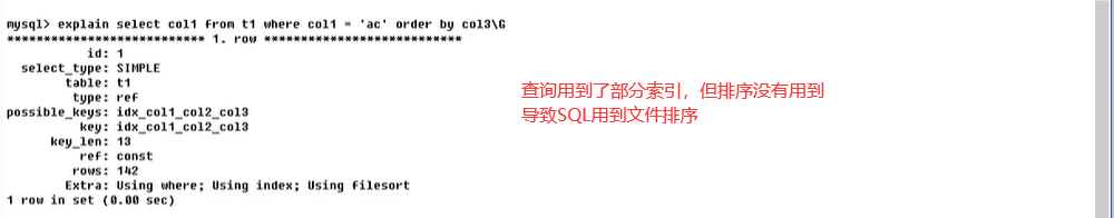 说明mysql会对数据使用一个外部的索引排序,而不是按照表内的索引顺序进行读取,MySQL中无法利用索引完成的排序操作成为“文件排序”。(出现这个就代表SQL不好)