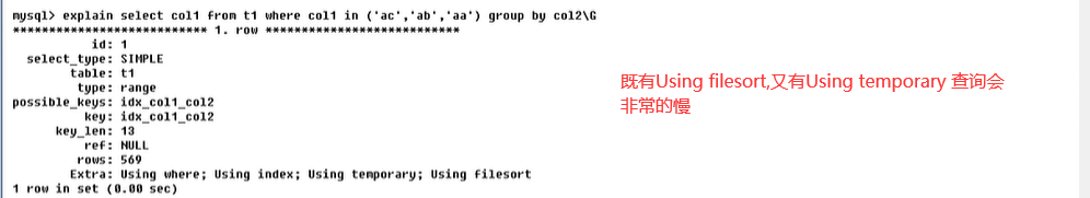 新建了内部临时表,保存中间结果,MySQL在对查询结果排序使用临时表,常见于order by 和分组查询 group by,因创建临时表大大降低了性能。