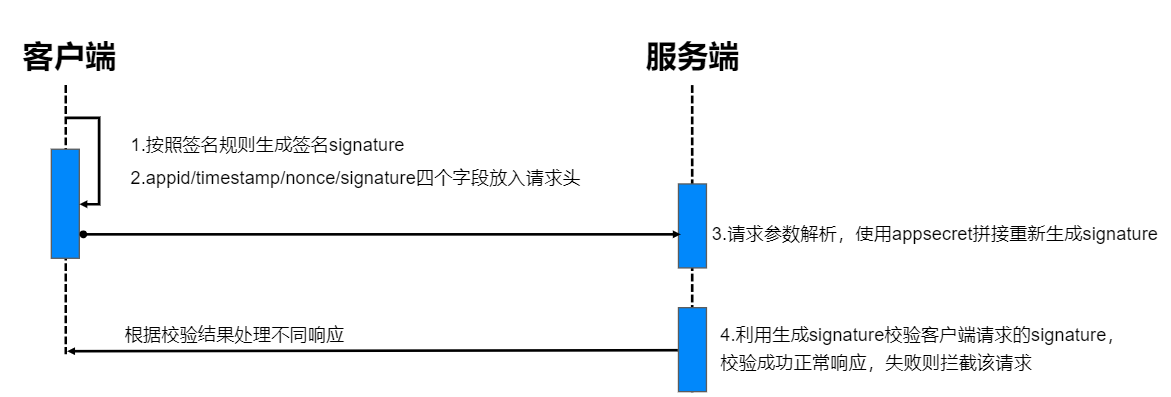 3、加入流水号nonce (防止重复提交),至少为10位。针对查询接口,流水号只用于日志落地,便于后期日志核查。 针对办理类接口需校验流水号在有效期内的唯一性,以避免重复请求。(如果没有防止重复提交的需求此字段后端可以不做处理该逻辑,仅认为signature生成的一部分即可)