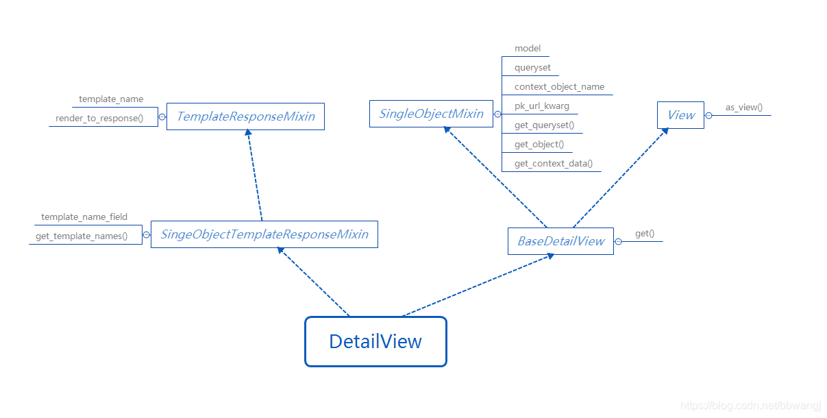 queryset.如果设置了queryset属性,get_queryset()默认返回它的值. - get_object(queryset=None):返回该视图要显示的单个对象.如果提供了