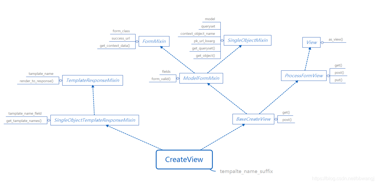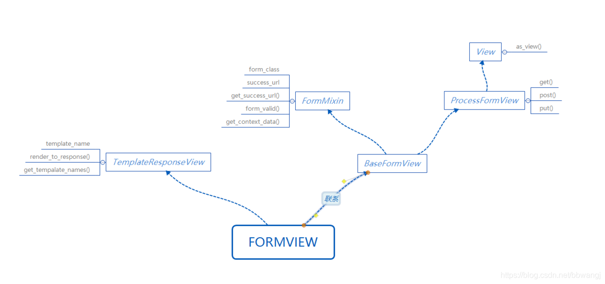 用于提交表单,其实这个就是CreateView和UpdateView的低配版,大概看了下源码,差别就是FromView提交表单验证通过后直接跳转到指定视图了,而后者则是执行了数据库添加或更新操作。