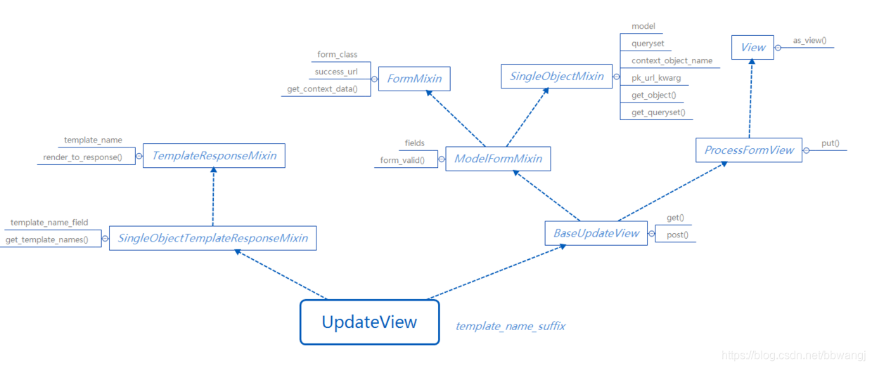 该视图用法与CreateView基本相同,仅在BaseUpdateView中对get()和post()的内部实现有区别.