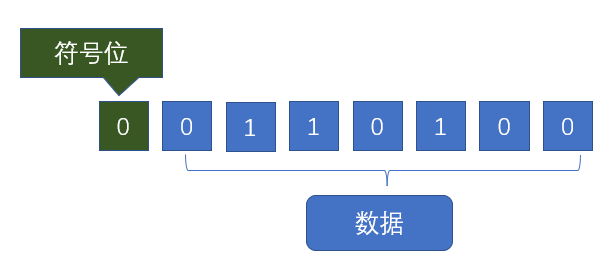 十进制数据的二进制表现形式,最左边是符号位,0为正,1为负。