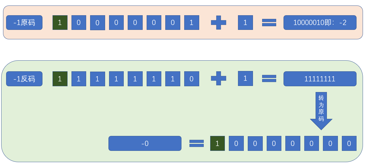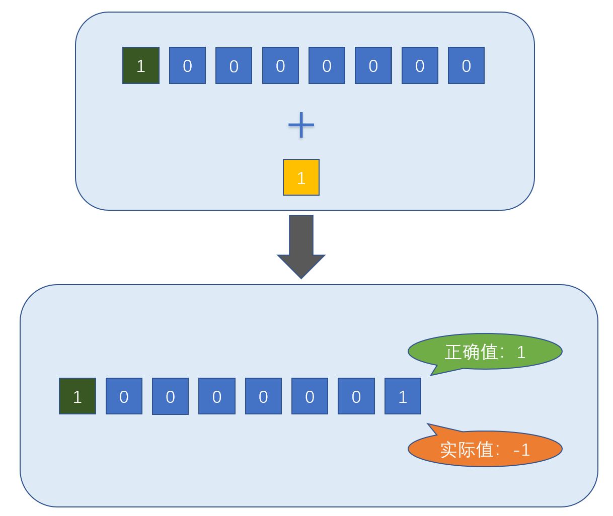 我们在-1的基础上,对其进行+1计算,原则上-1+1应该等于0,实际却等于-2