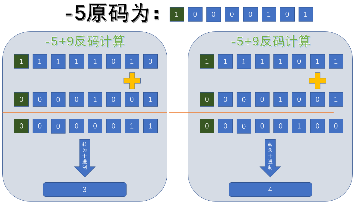我们可能会想了,那我们把数轴方向旋转180度,换个方向不就可以了吗?酷,于是就出现了反码。
