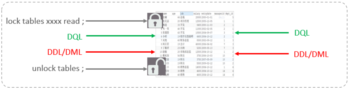 其典型的使用场景是做全库的逻辑备份,对所有的表进行锁定,从而获取一致性视图,保证数据的完整性。