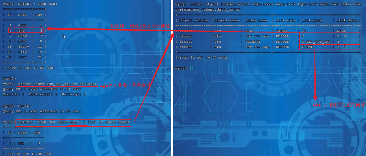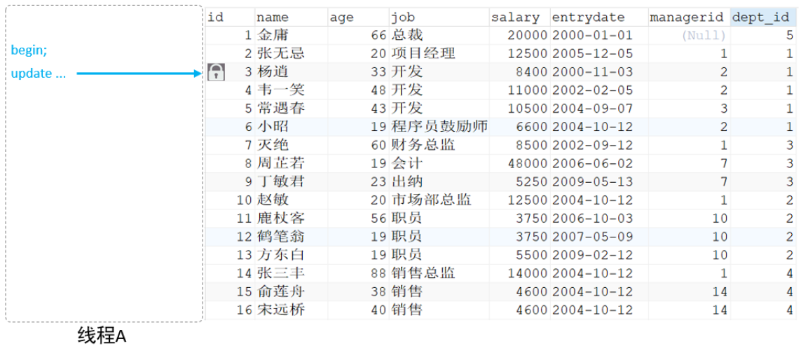 演示行锁的时候,我们就通过上面这张表来演示一下。