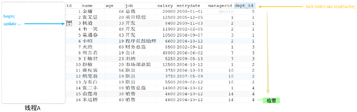这里的元数据,大家可以简单理解为就是一张表的表结构。 也就是说,某一张表涉及到未提交的事务时,是不能够修改这张表的表结构的。